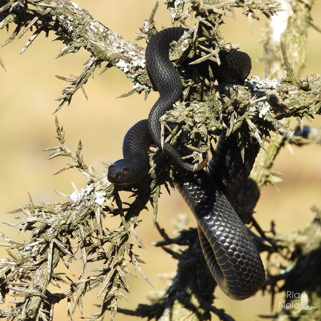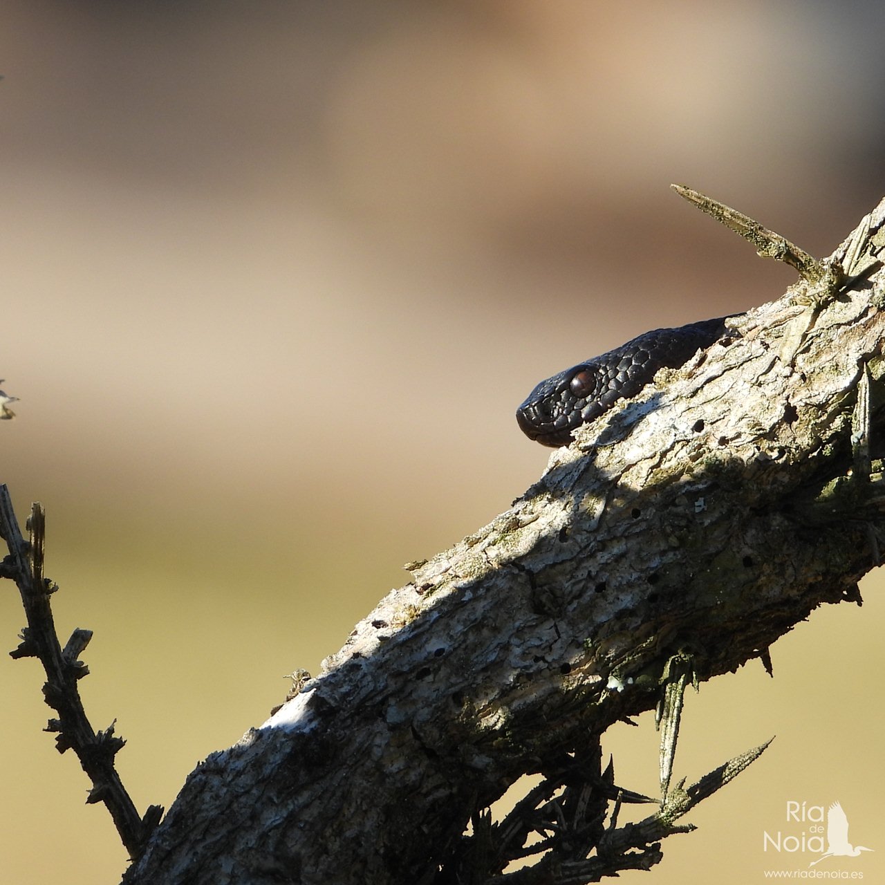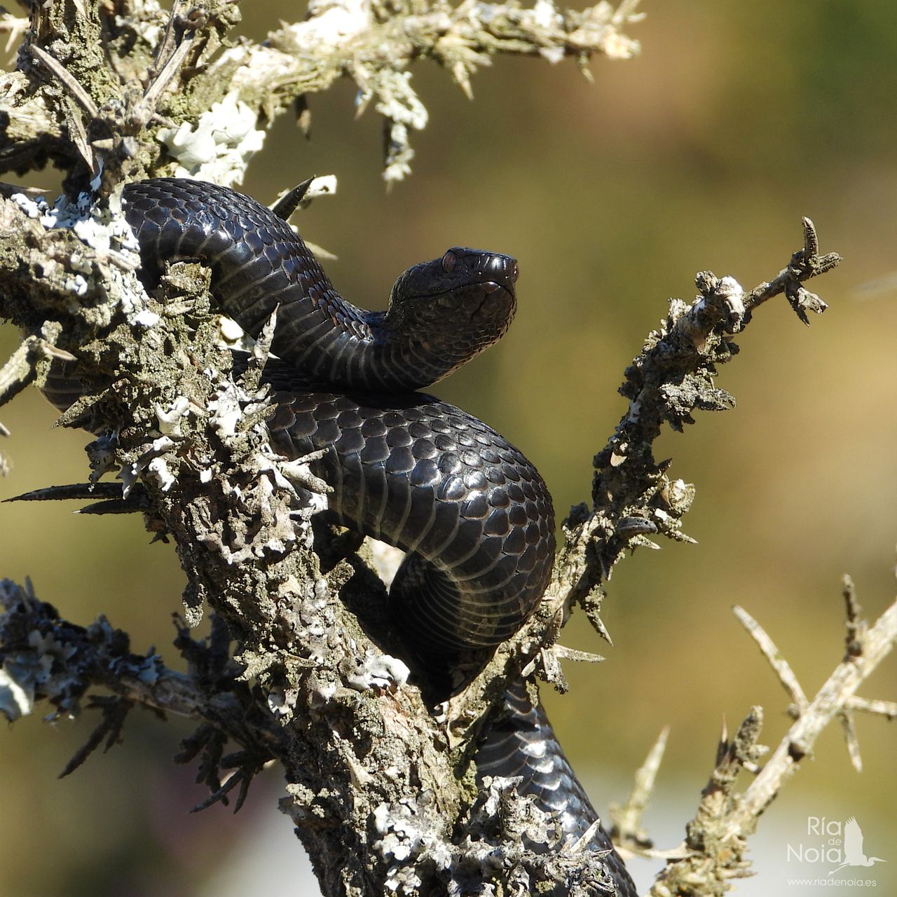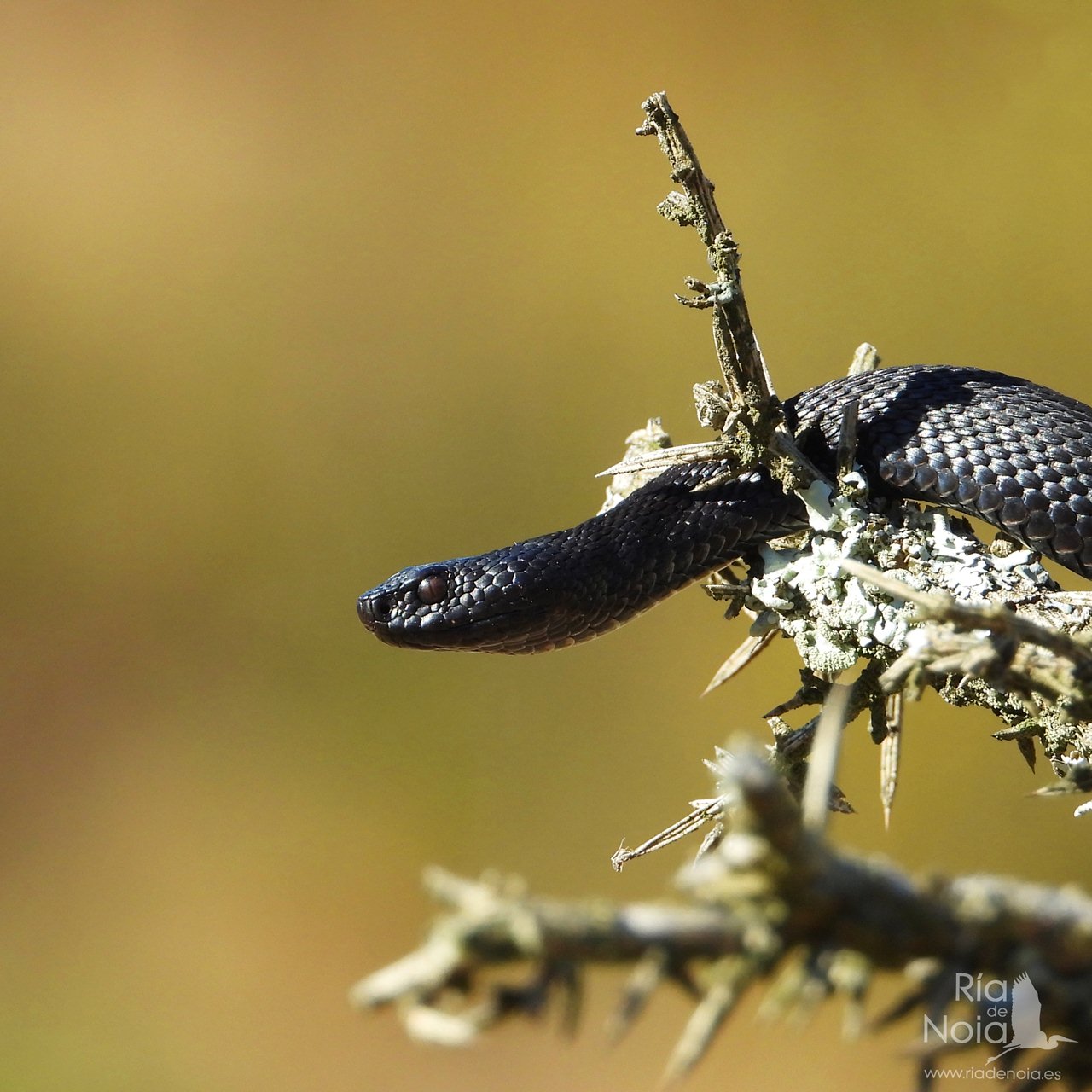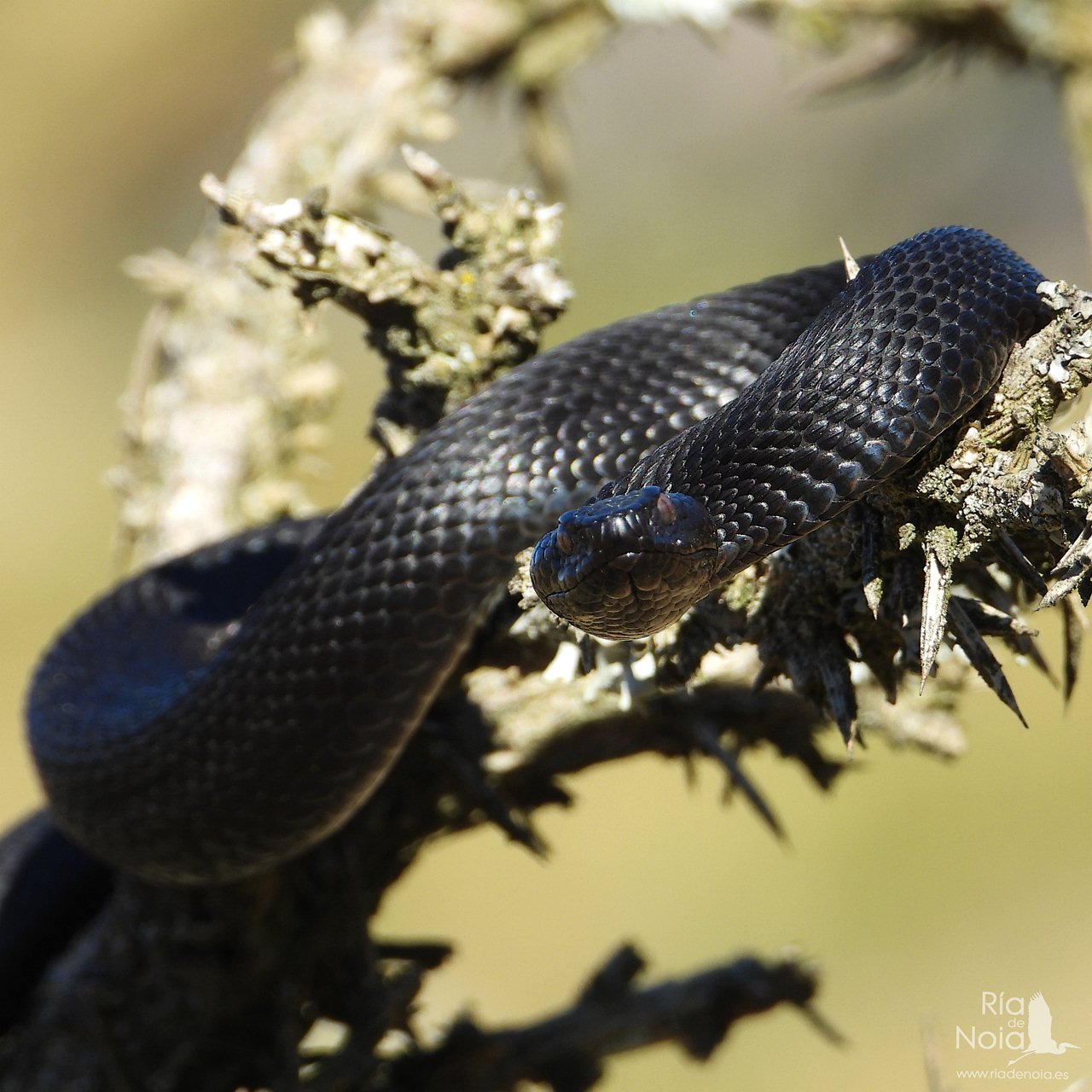La víbora de seoane (Vipera seoanei), es, afortunadamente un reptil que se puede considerar «estable», que no abundante, en algunas zonas de la ría, especialmente en las zonas montañosas a ambos márgenes, pero también en zonas forestales intermedias e incluso localizable en los arenales costeros, pero además tenemos la suerte de poder disfrutar de una relativa anomalía en el patrón cromático de esta especie, que es el melanismo.