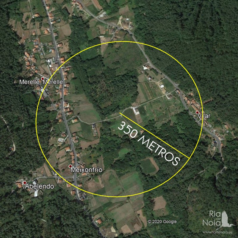 Los perros venían azuzados, empujando a la presa, un jabalí de tamaño medio, por el borde del río Tállara, justo por donde se encuentra la concurrida senda peatonal fluvial que une Noia con Merelle, un grupo de cazadores esperaba con los coches en la carretera, otros escondidos en el bosque de ribera, al final, y tras varios disparos, el jabalí salió de la foresta a una braña donde quedó expuesto a los disparos de la manada de «valientes» y donde finalmente fue abatido, como se puede ver en las imágenes, a unos 65 metros de la vivienda mas cercana, considerándose esa una zona de seguridad (100 m.) según el artículo 42 de la Ley de caza de Galicia, y estando prohibido no sólo disparar en esa zona, sino incluso portar armas cargadas, segun el artículo 43 de esa misma ley